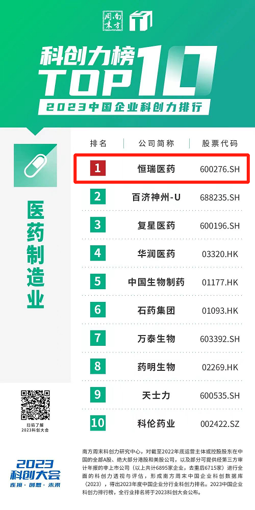 创新再获认可,利来国际医药蝉联“中国企业科创力排行”医药制造业榜首